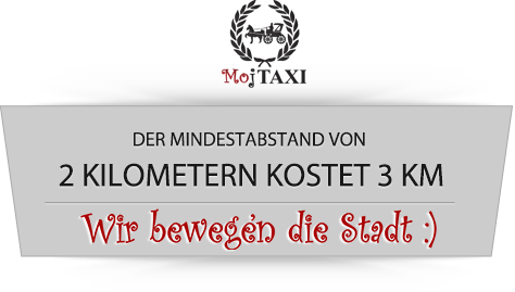*ANFAHRT – Die Anfahrt ist GRATIS. *ABFAHRT – Die Abfahrt ist GRATIS *PREIS -1 km kostet 2,00KM *GRUNDPREIS – Der Grundpreis für eine kostet 3KM, danach kostet ein gefahrener Kilometer 1KM *WARTEZEIT – 18KM je Stunde *GRATIS – Für alle Fahrstrecken über 100km ist die Rückfahrt gratis, man bezahlt die Fahrt in einer Richtung und eventuelle Wartezeit und die Rückfahrt ist GRATIS.